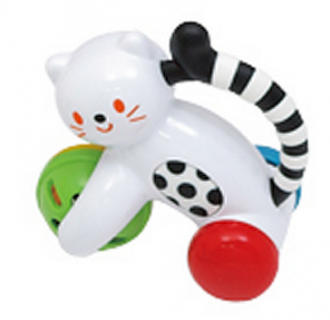 - Bé có thể lắc xúc xắc để nghe thấy tiếng kêu vui tai, hoặc bé có thể lăn con mèo đi trên mặt phẳng bằng cách nắm phần tay cầm hình chiếc đuôi mèo.